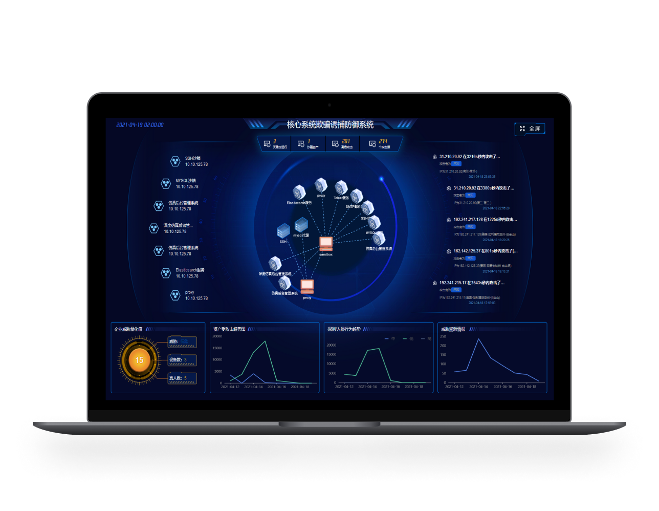 攻擊欺騙誘捕防御系統(tǒng)基于網(wǎng)絡(luò)欺騙和主動防御理論,通過蜜罐、蜜餌等構(gòu)建沉浸式誘捕蜜網(wǎng),混淆攻擊視聽,增加攻擊代價,達(dá)到延緩攻擊進(jìn)程,進(jìn)而保護(hù)用戶資產(chǎn)的目的